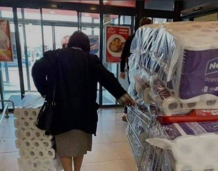 Շատերին կարող է թվալ, թե սա սովորական հայկական չտեսություն է։ Նաեւ մեր ազգին բնորոշ՝ արագ խուճապի մատնվելու ունակություն։ Սակայն աշխարհի տարբեր անկյուններում արված ֆոտոռեպորտաժներն ասում են, որ սննդի եւ կենցաղային իրերի խուճապային քանակի գնումներ արվում են բոլոր երկրներում։ Եվ զուգարանի թղթի մեկ տարվա պաշար կրող այս կինը եզակի երեւույթ չէ՝ ամենուրեք այսպես է։