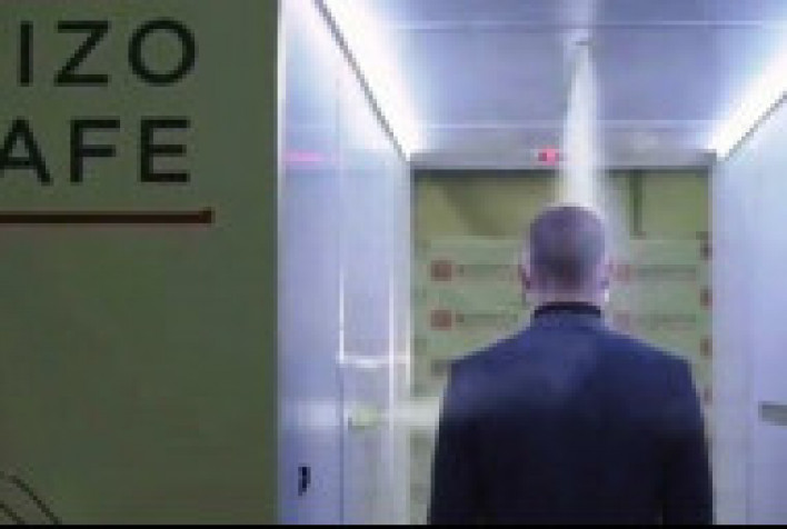 Թունելի կադրերը, որոնք հրապարակել է գործակալությունը, ցույց են տալիս, թե ինչպես են թունելի միջով անցնող մարդիկ ախտահանվում՝ առաստաղից և կողքերից ցայտող ախտահանիչ լուծույթի օգնությամբ։