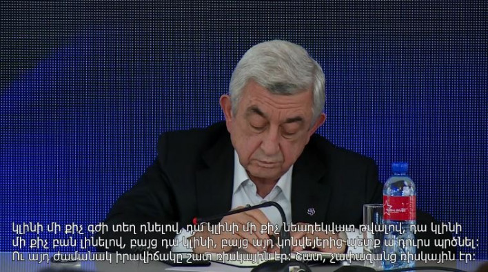 Սերժ Սարգսյանն իր կողմից ավելացնում է, թե այս մարդը ամենևին էլ էլ գիժ չէ, և ուզում է զրոյացնել բանակցային փաստաթղթերը:
