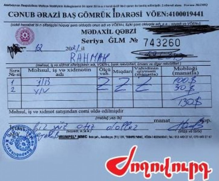 «Ժողովուրդ» օրաթերթը գրում է. Հայ գործարարներն Իրան գնալու համար ադրբեջանցիներին մաքսատուրք են վճարում: «Ժողովուրդ» օրաթերթի տրամադրության տակ ադրբեջանական մաքսակետի տրամադրած կտրոն է հայտնվել, որ փաստում է՝ հայ գործարարների ապրանքափոխադրմամբ զբաղվող պարսիկ վարորդները շարունակում են օգտվել Գորիս-Կապան ճանապարհահատվածի՝ Ադրբեջանի վերահսկողության տակ հայտնված հատվածից, ինչի համար ադրբեջանցիներին գումար են վճարում, տվյալ դեպքում՝ 130 ԱՄն դոլար: