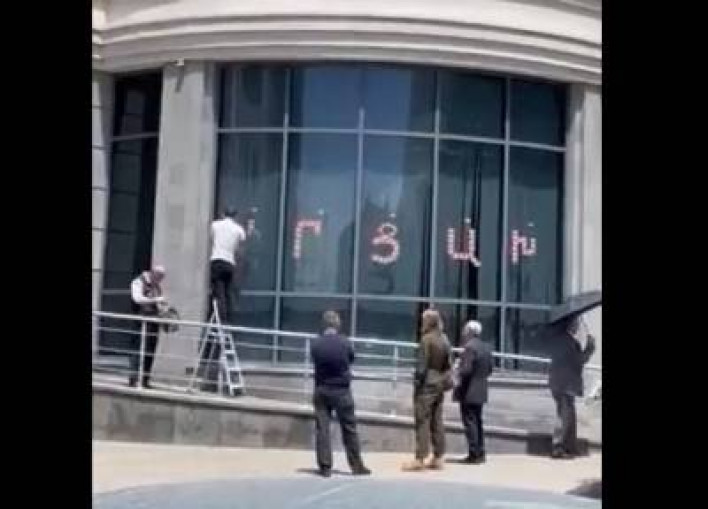 «Հրապարակ» թերթը գրում է. «Նախօրեին ԱԳՆ-ի մոտից ցուցարարների հեռանալուց 5 րոպե անց ԱԳՆ աշխատակիցները սկսել են քերել շենքի պատուհաններին Արցախի դրոշով «Արցախ» գրառումը։ Նման բան մեկ էլ ամիսներ առաջ արել էին ադրբեջանցի զինվորները` Արցախ մեկնող երեխաների ավտոբուսի վրայից դանակով քերելով Արցախի դրոշը: