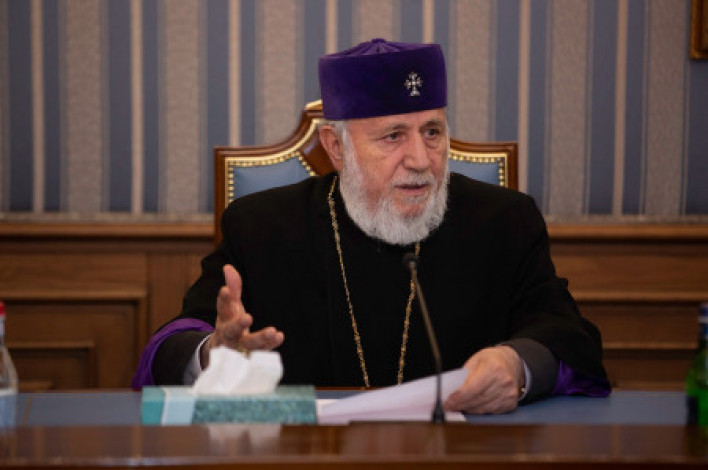 - Երկրում ստեղծված իրավիճակով թելադրված՝ օգտակար նկատեցինք Մայր Աթոռ Սուրբ Էջմիածնում հանդիպում կազմակերպելու ՀՀ եւ ԱՀ վաստակյալ նախագահների հետ՝ քննարկելու առկա իրադրության հաղթահարման հնարավորությունները։ Նախագահները սիրով արձագանքեցին մեր հրավերին։ Ունեցանք առանձնազրույցներ նախագահների հետ, կազմակերպվեց նաեւ ընդհանուր հանդիպումը։ Արձանագրված մոտեցումների տարբերությունների եւ քաղաքական կյանքի հետագա ընթացքների պատճառով նոր հանդիպում հնարավոր չեղավ նախաձեռնել։ Այսուհանդերձ, մենք շարունակում ենք շփումները նախագահների հետ եւ ամենայն ջանք ի գործ ենք դնելու՝ հանուն ազգային միասնականության, որով միայն հնարավոր պիտի լինի հաղթահարել առկա ծանր մարտահրավերները։