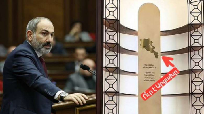 ՀՀ վարչապետ Նիկոլ Փաշինյանի աշխատասենյակի քարտեզն առանց Արցախի է, գրում է «ԴՕԿԻ ՁԱՅՆ» տելեգրամյան ալիքը: