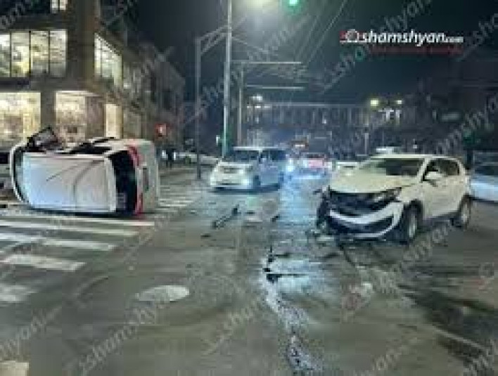 Աճառյան–Ծարավ Աղբյուր խաչմերուկում բախվել են Kia-ն և Honda-ն․ վերջինս շրջվել է․ վարորդներից մեկը լքել է դեպքի վայրը