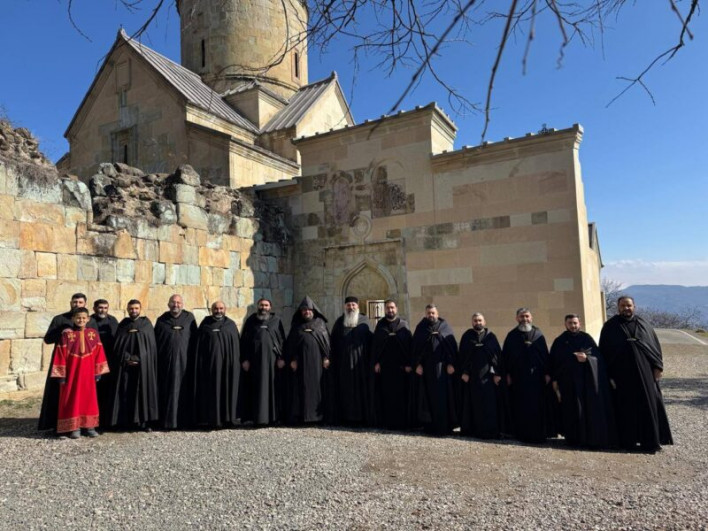Փետրվարի 25-ին Տավուշի թեմի հոգևոր դասը միասնական աղոթքի էր Բերդ համայնքի Նոր Վարագավանք վանական համալիրում։