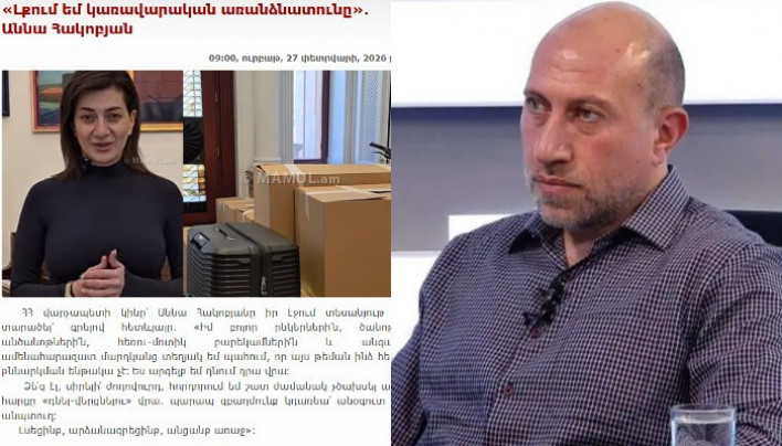 ԲԴԽ-ին կոչ ենք անում հետևողական լինել և հատկապես դատական նիստերին դրսևորել զուսպ ու դատավորներին վայել վարքագիծ. Դատավորների միություն Խորտակվող նավը ժամանակին լքելը ոչ թե դավաճանություն է, այլ սթափ մտածողություն. քաղաքագետ Ողբերգական դեպք Գյումրիում, սուպերմարկետից բժշկական կենտրոն է տեղափոխել մաhացած 65-ամյա կին ՀՀ կառավարությունը չի հրապարակում ԱՄՆ-ից արտաքսվածների թիվը Վթար՝ Արագածոտնում, Տառերի պուրակի հարևանությամբ բախվել են «Opel» ու «Volkswagen»-ը, վիրավnրներ կան Մենք հենց հիմա տեսնում ենք, թե ոնց է դե-ֆակտո իշխող խմբավորումը պայքարում (թոշակներից մինչև ֆեյք ամուսնալուծություն)․ Գեղամյան Դրանց հարցրեք՝ դուք ե՞րբ էիք ամուսնացած եղել․ տեր Ահարոն Սաստիկ բքի պատճառով Գյումրի-Բավրա ավտոճանապարհը փակ է բոլոր տեսակի տրանսպորտային միջոցների համար Ներկա դատախազը հանցանքի մասնակից է․ Ռոբերտ Քոչարյանի սուր խոսքը դատարանում (video) Վարչապետի կնոջ ամուսնալուծությունը քաղաքական տեխնոլոգիա է. վերլուծաբան Առավոտյան իմ եւ ինձ նման տասնյակ հազարավոր ադեկվատ մարդկանց ինտելեկտը հերթական անգամ բռնաբարվեց Այսօր միանում ենք հայերին` սգալով և տուրք մատուցելով 1988թ․ Սումգայիթում զոհ գնացածների հիշատակին. ԱՄՆ դեսպանություն Ո՞վ է թիվ մեկ մեղավորը. Էլինար Վարդանյան Պակիստանը օդային հարվածներ է հասցրել Քաբուլին եւ Աֆղանստանի մի քանի քաղաքների «Փայլուն դրամատուրգիա՝ Աննա Հակոբյանի կողմից»․ Մհեր Մկրտչյան Սպասելով «մոլդովական սցենարին». Հովհաննիսյան «Եթե սա նախընտրական տեխնոլոգիա չէ, ապա սխալ է Աննա Հակոբյանի՝ պետական պահպանությունից դուրս լինելը»․ Հակոբ Բադալյան Ադրբեջանն իր ողջ ռեսուրսը մեծացնում է՝ հայ ժողովրդին իր բնօրրանից քշելու համար Ճգնաժամերը խորանում են․ մեծ պայթյուն կլինի (video) Ծովազարդի դպրոցում 14-ամյա տղան հարվածել է համադասարանցու դեմքին՝ կոտրելով քիթը ՌԴ ՀՕՊ ուժերը խոցել են 15 անօդաչու թռչող սարք Ալիևը նշել է, որ թշնամին՝ նկատի ունի Հայաստանին, պետք է միշտ վախենա, ինչպես դա հիմա է անում. Տիգրան Աբրահամյան Փոքր պետության նման վարքագիծը գրեթե միշտ հանգեցնում ծայրահեղ ընտրության` վատի և վատթարագույնի միջև. Գոռ Գևորգյան Իրանը մշտապես աջակցել և պաշտպանել է Հայաստանի ինքնիշխանությունը և տարածքային ամբողջականությունը․ Իրանի դեսպան. «Ազատություն» ՊՈԼՍՈՅ ՄԱՇԱԼԵԱՆ ՊԱՏՐԻԱՐՔԻ SYNODAL ԱՆՈՒՐՋՆԵՐԸ. Աղեքսանդր Քանանեան