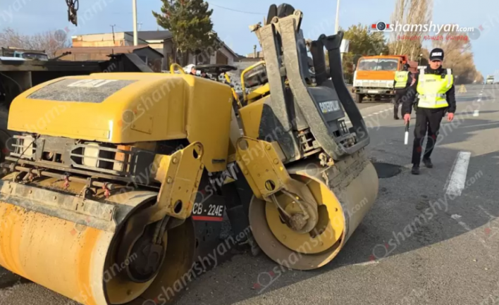 Կոտայքի մարզում «Opel»-ը բախվել է ճանապարհին ասֆալտապատման աշխատանքներ կատարող մեքենային
