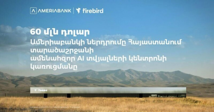 Ամերիաբանկը 60 մլն ԱՄՆ դոլարի ֆինանսավորում է տրամադրել Firebird AI ընկերության կողմից արհեստական բանականության տվյալների կենտրոնի կառուցման նախագծին՝ մեկնարկելով ՀՀ տնտեսության համար կարևորագույն նախագծի ֆինանսավորման գործընթացը։