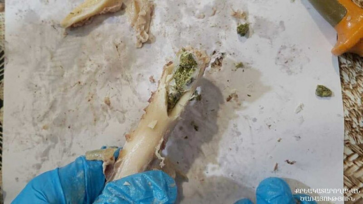 Ապրիլի 09-ին՝ ժամը 12:30-ի սահմաններում, Քրեակատարողական ծառայության կենտրոնական մարմնի օպերատիվ վարչության «Արմավիր» տարածքային բաժնի ծառայողները, իրացնելով օպերատիվ տեղեկությունները, դատապարտյալի անվամբ քաղաքացու կողմից բերված հանձնուքում՝ եփված մսի ոսկորների միջից, հայտնաբերել են 7 փաթեթ՝ ընդհանուր 8.83 գրամ քաշով, մարիխուանային նմանվող բուսական զանգվածով: