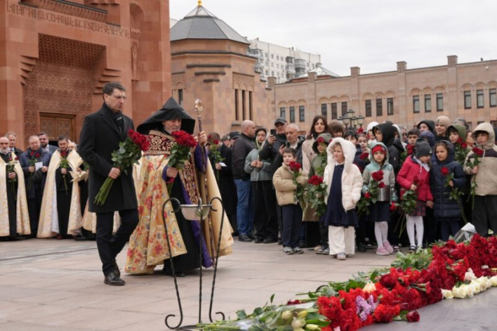Ապրիլի 24-ն Մոսկվայի Սուրբ Պայծառակերպություն եկեղեցին մարդաշատ էր։ Թեմակալ առաջնորդ Տեր Եզրաս արք․ Ներսիսյանի հանդիսապետությամբ բարեխոսական կարգ կատարվեց՝ աղոթական ներկայությամբ Ռուս Ուղղափառ Եկեղեցու, ասորի, հռոմեակաթոլիկ և կրոնական այլ կազմակերպությունների ներկայացուցիչների։ Արարողությանը ներկա էին նաև ՌԴ նախագահի աշխատակազմի պաշտոնյաներ, պետական այրեր, ՌԴ-ում հավատարմագրված օտարերկրյա դիվանագետներ, հայ մտավորականներ ու ազգային բարերարներ։